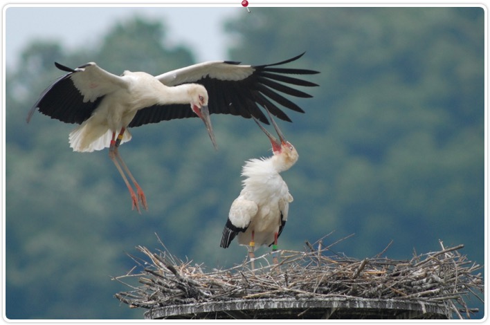 コウノトリ郷公園では一羽の飛ばないコウノトリの心配がされていた。